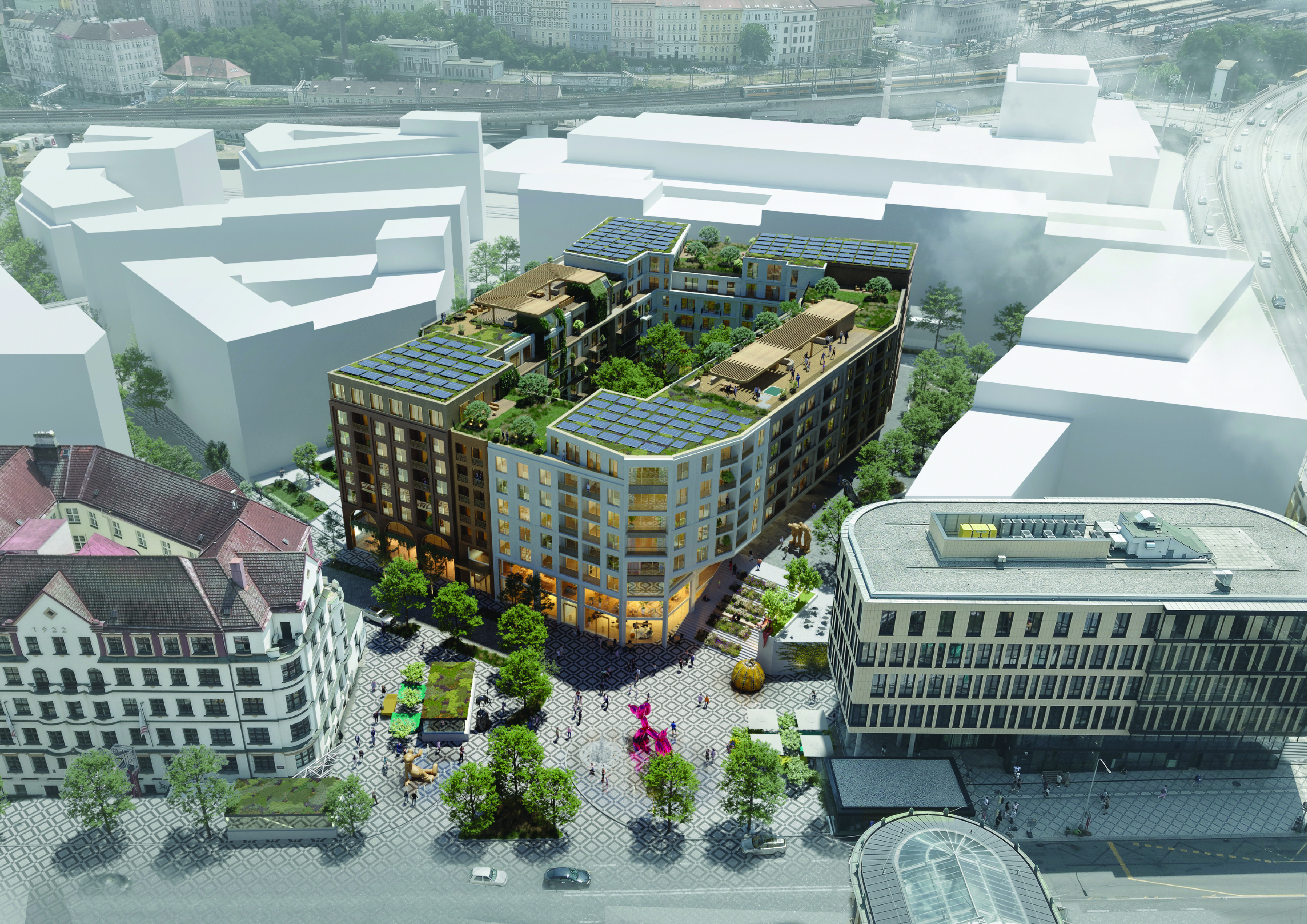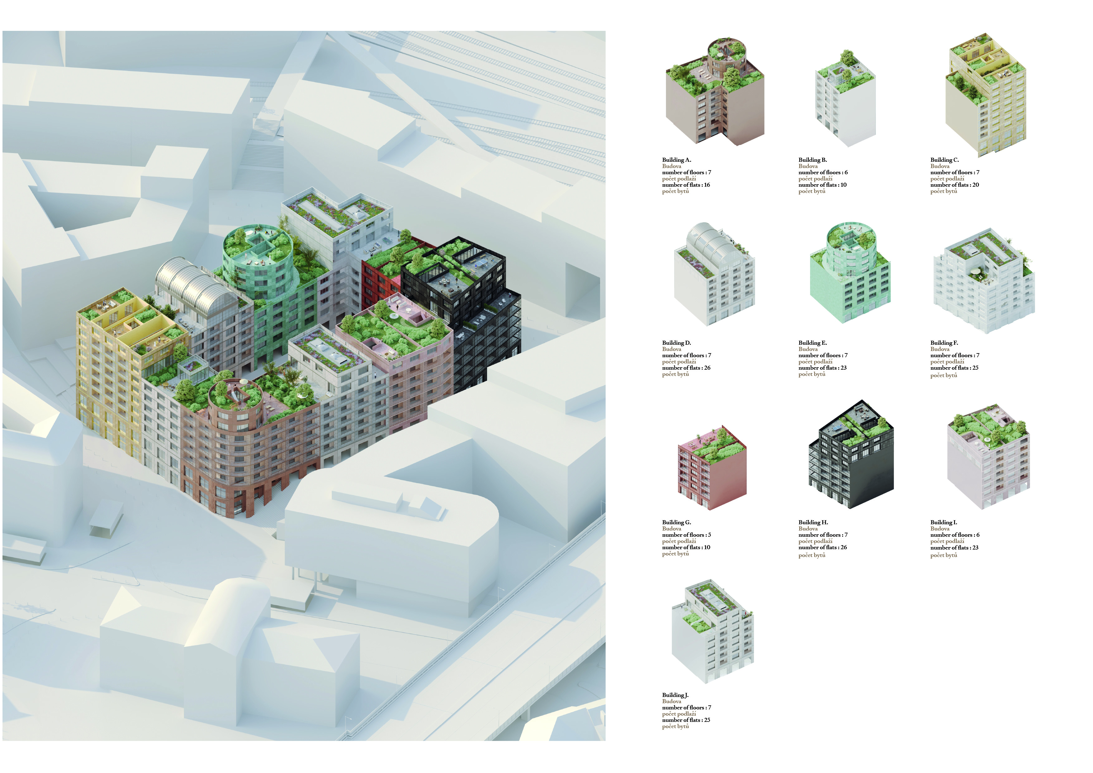 PRAGUE BLOCK – the design draws from the tradition of the Prague tenement house. Each building has its own identity, expressed through materials and appearance. However, the whole is unified by
