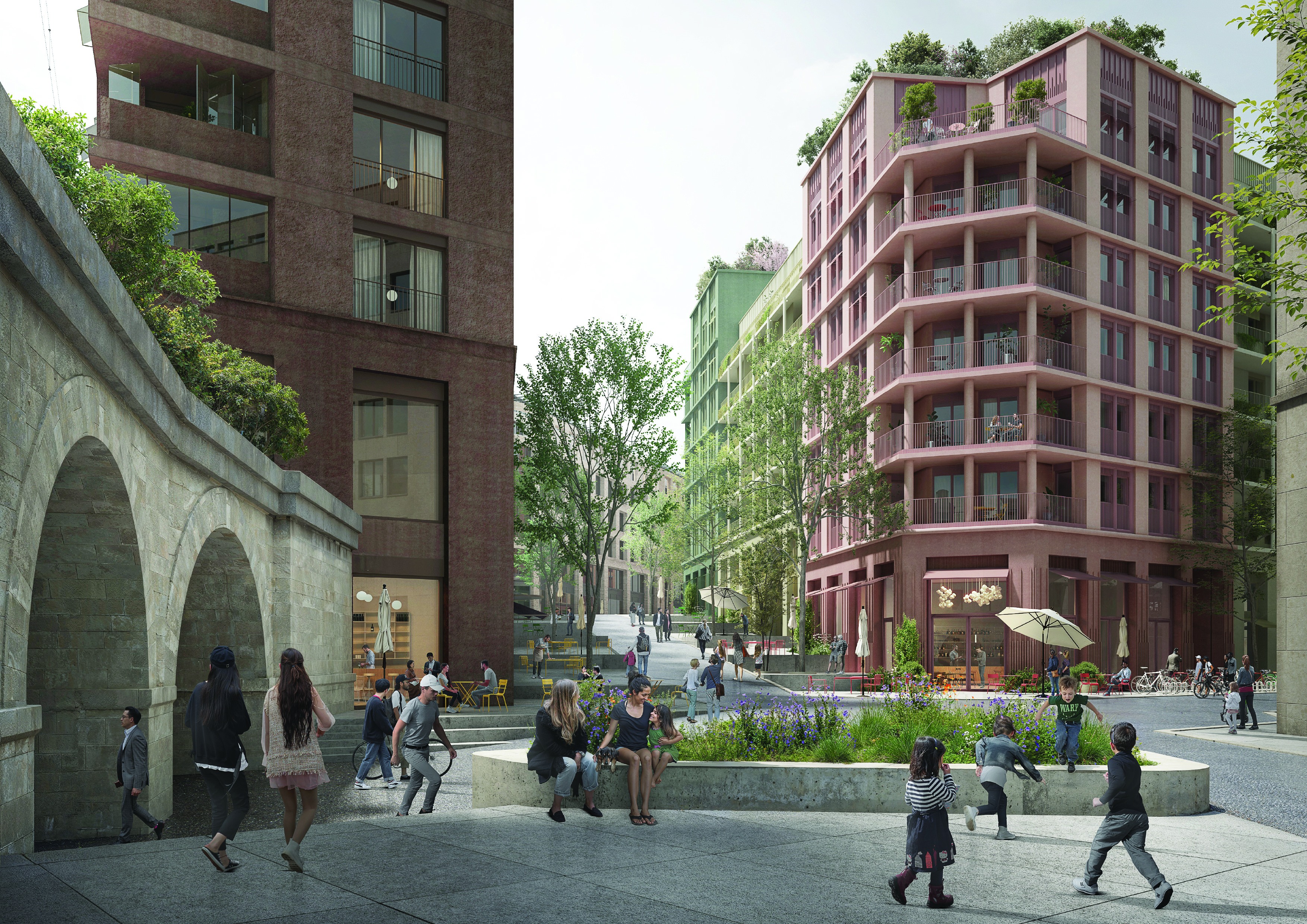 heights of the site and engage in a dialogue with the Negrelli Viaduct to the
