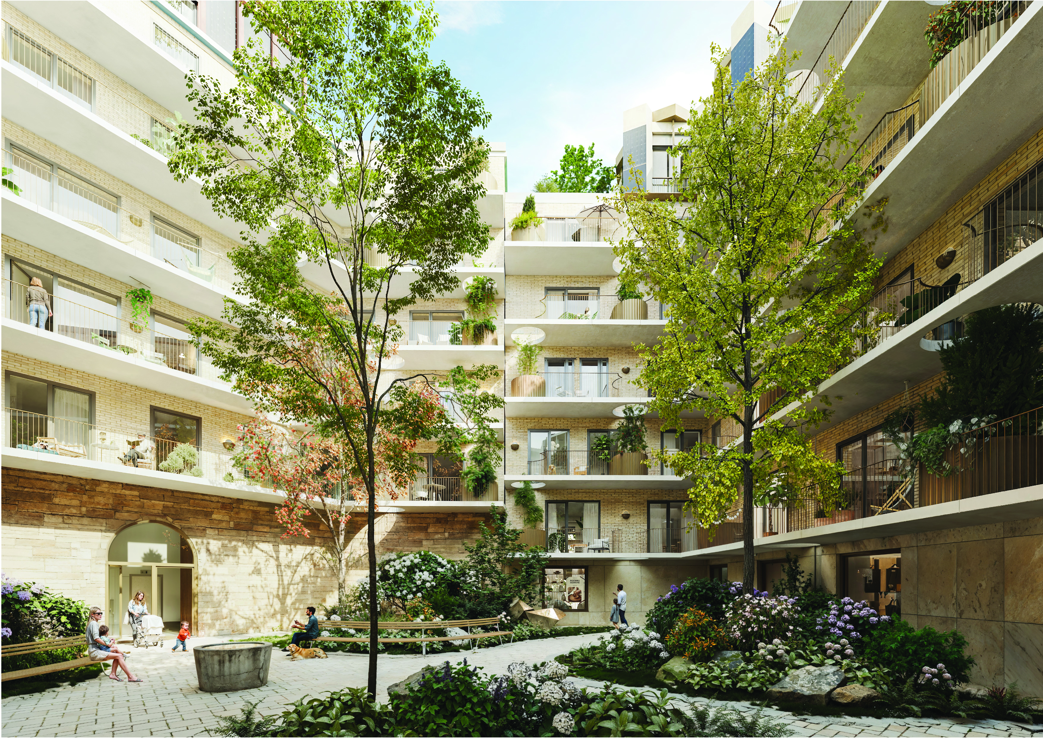 the block a strong identity. Efficient apartment layouts, internal courtyards,
