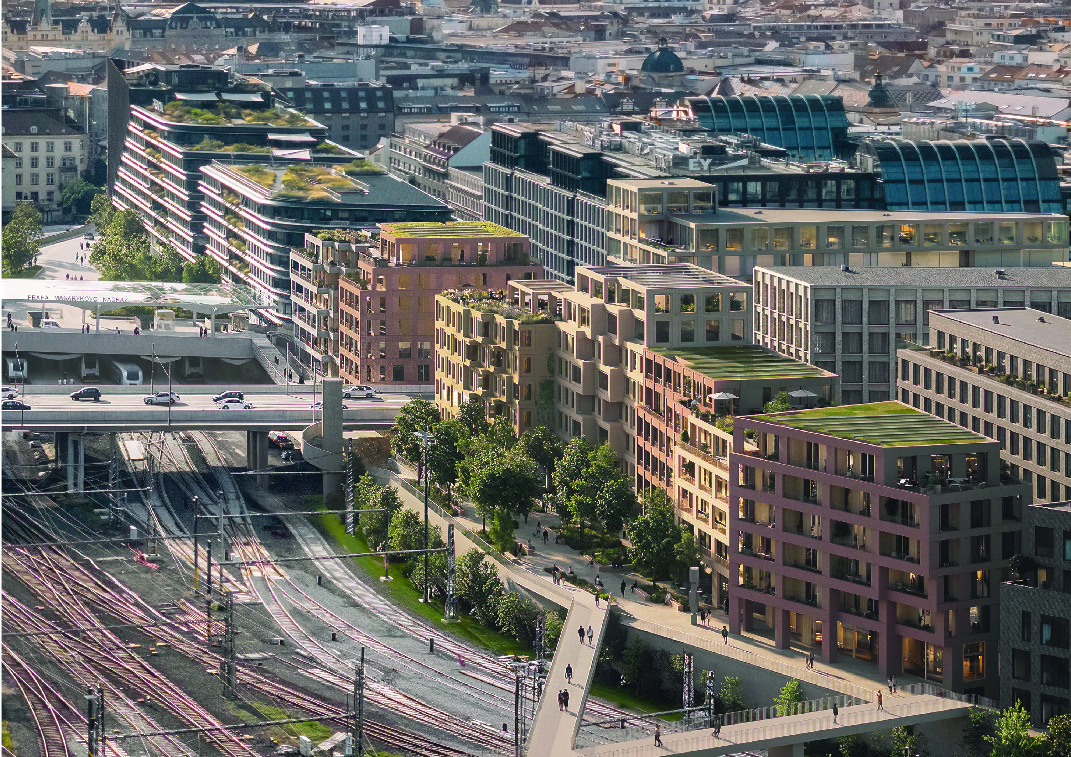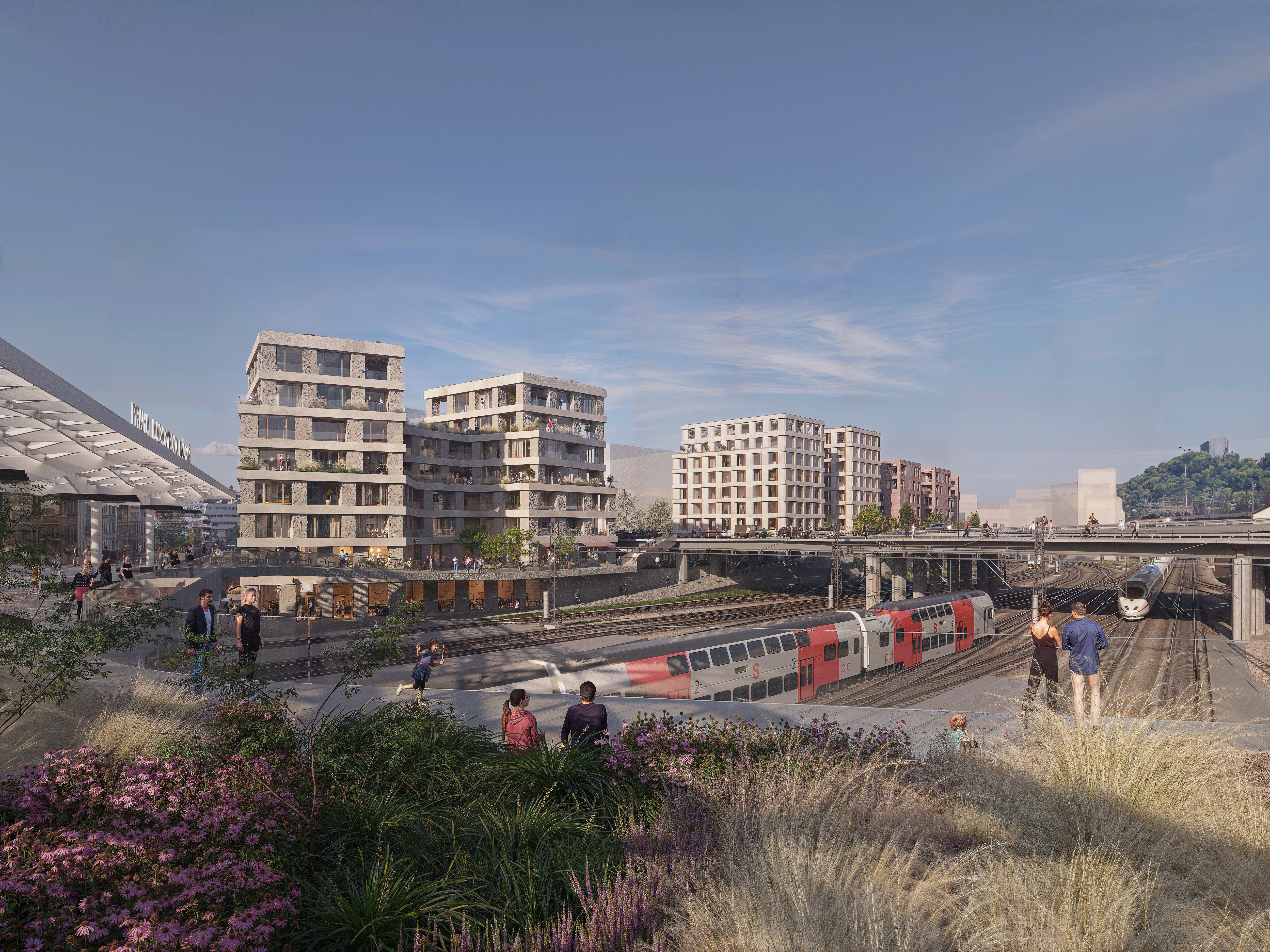 The design of Block B4 is the result of collaboration between two renowned studios with international experience. Our proposal is located at the edge of two worlds. Our vision encompasses the contrast between the smaller historic city and the large scale of the railway corridor. The buildings on the border between two worlds connect the city on many levels. The contrast between different scales and atmospheres is the inspiration for the layered design.