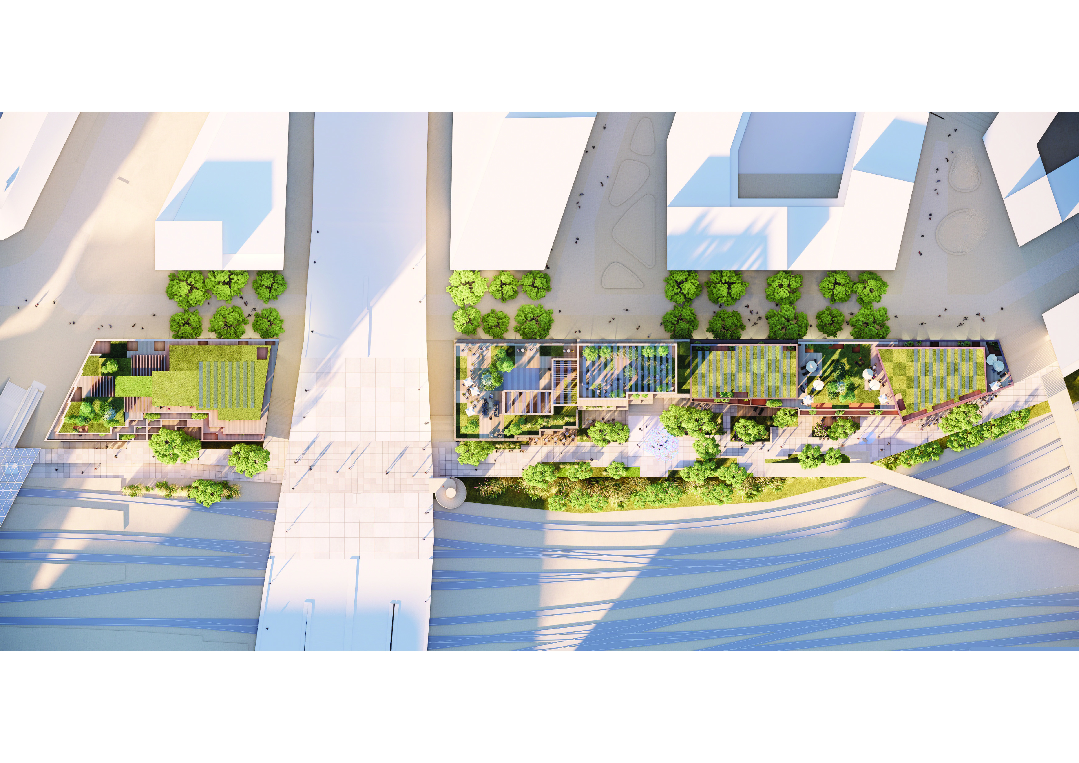 south, an elevated pedestrian promenade is proposed along the tracks.