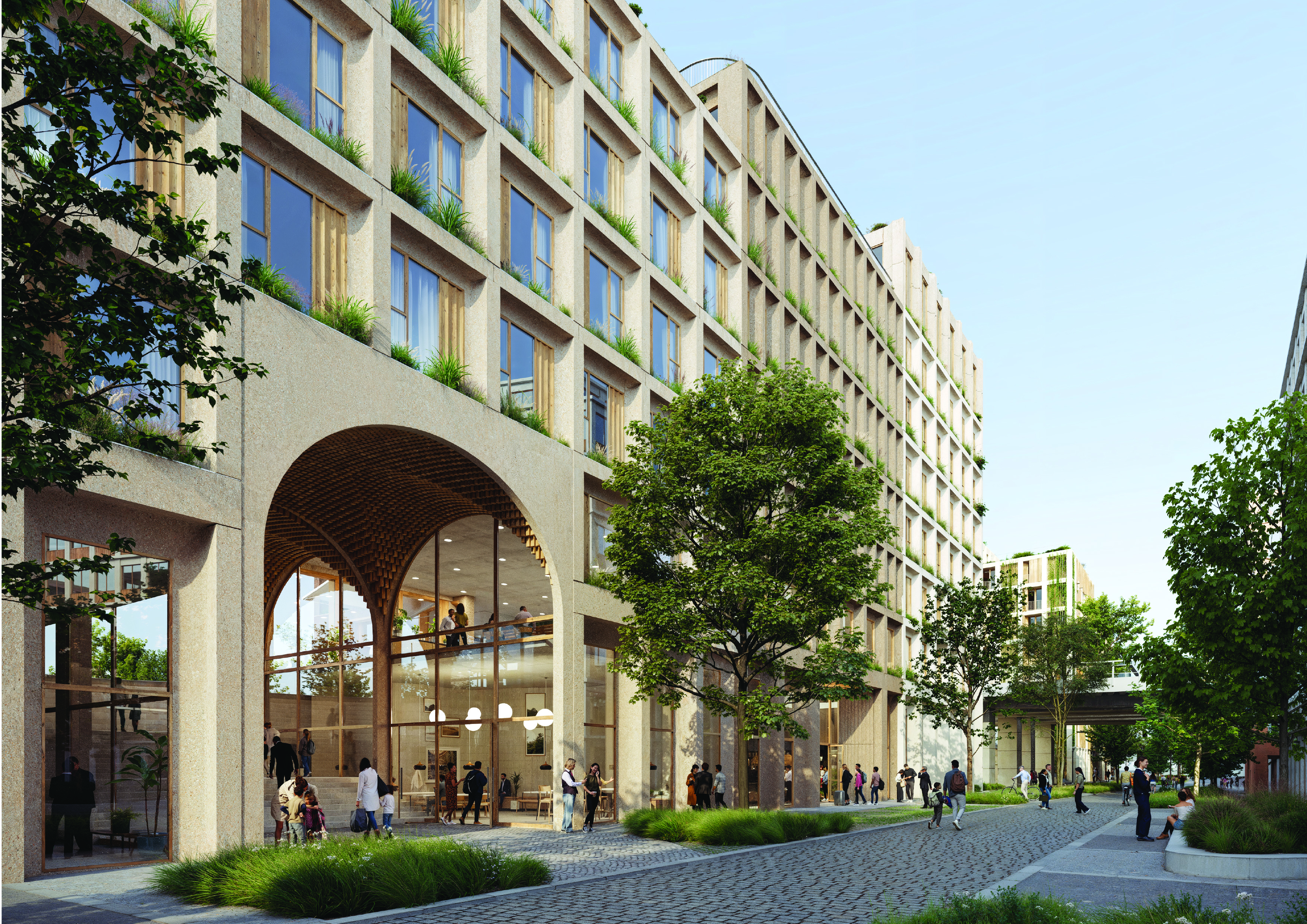 The block is designed as a lively residential hub, with a hotel at its core and retail outlets activating both the street level and the space beneath the Wilsonova flyover.