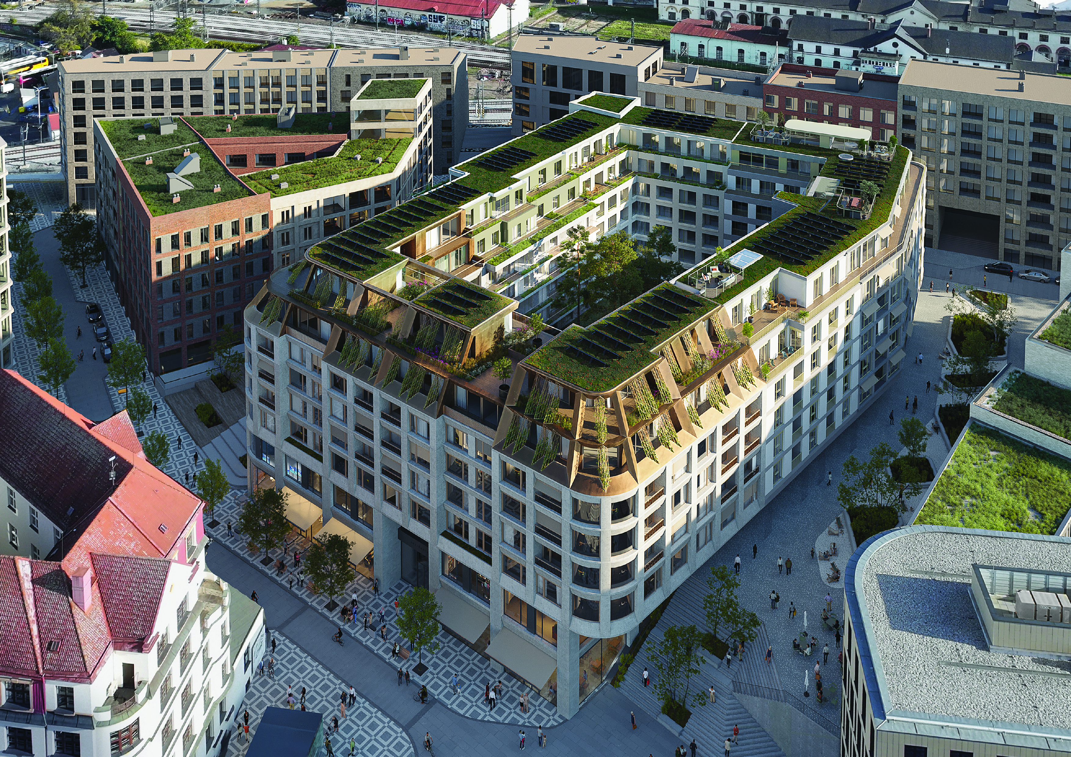 Na základě generelu, který vzešel z urbanistické soutěže konané v roce 2021, byly uspořádány čtyři paralelní architektonické soutěž zaměřené na návrh jednotlivých budov. Území bylo rozděleno na bloky a cílem bylo nalézt architekty pro jednotlivé bloky či jejich části. Tím lze zajistit rozmanitost budov i přístupů, což vytvoří pestrou a zajímavou čtvrť při současném zachování nejvyšších standardů moderní architektury i výstavby včetně zakomponování principů udržitelnosti.
