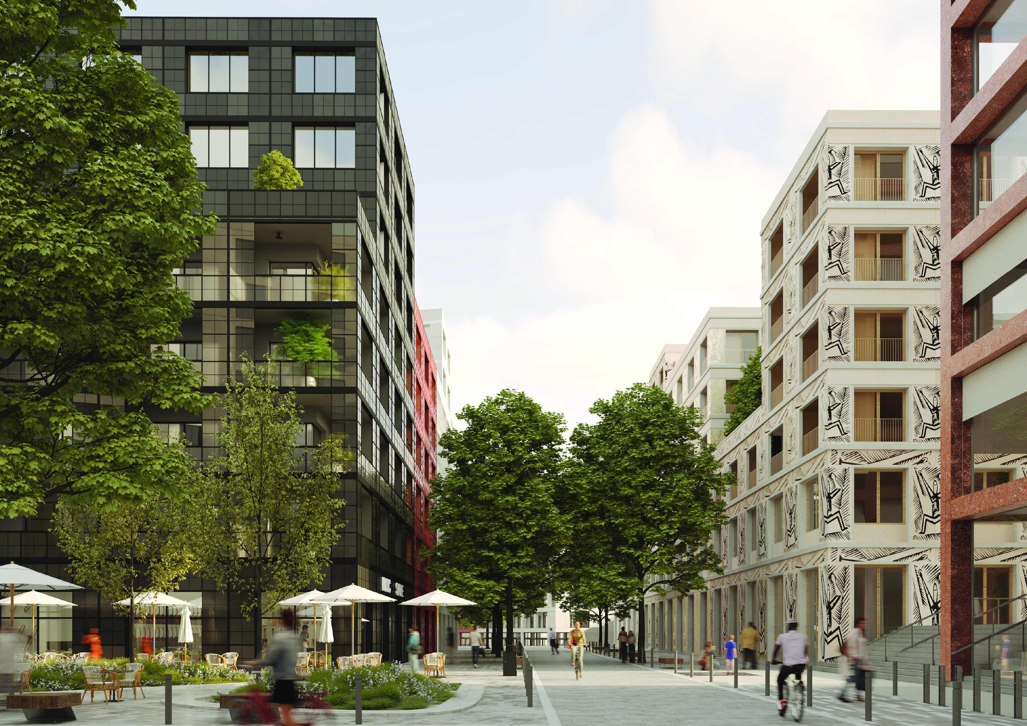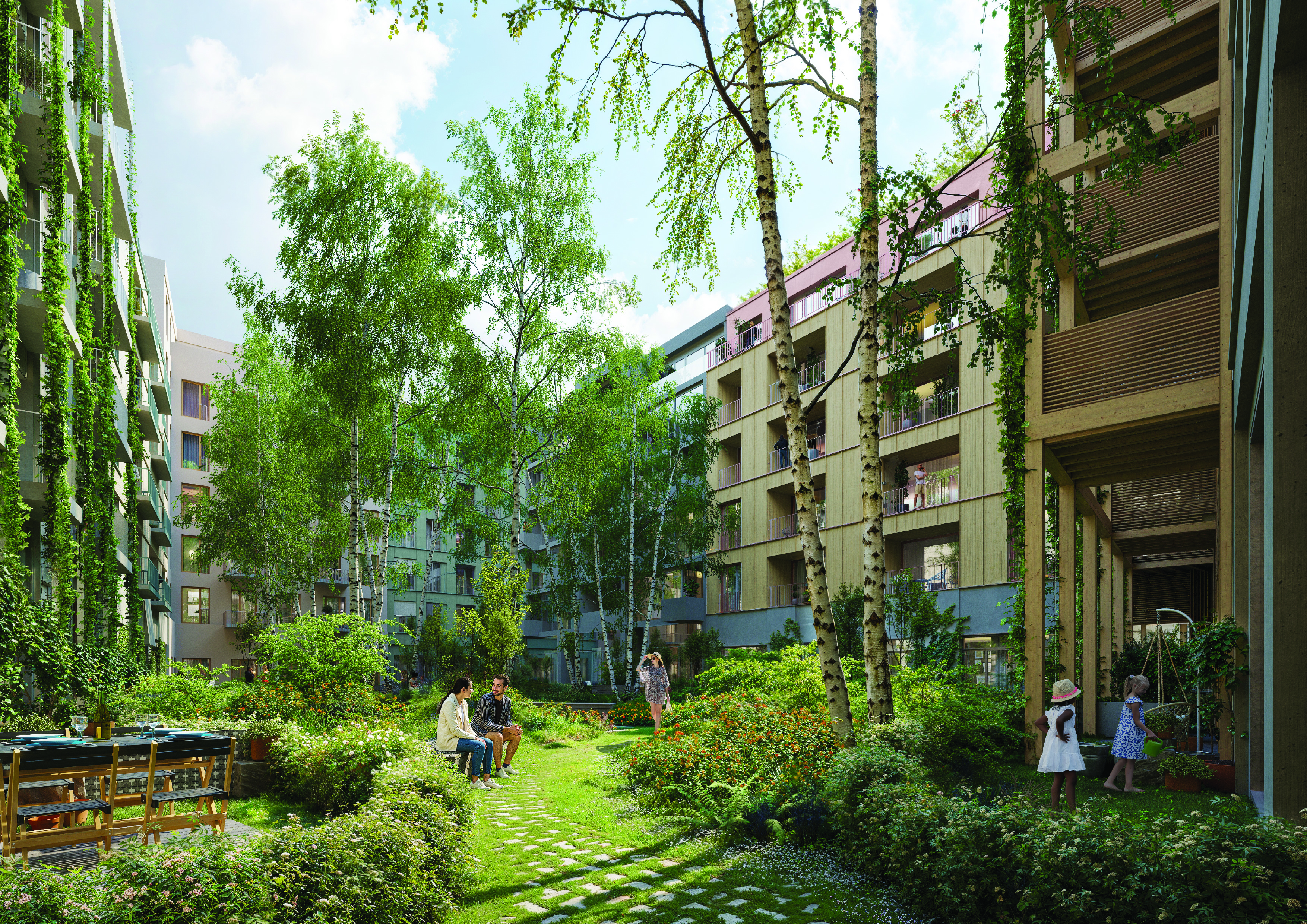 ZELENÝ BLOK– součástí bloku je tradiční zelený vnitroblok, který je sdíleným prostorem obyvatel, podporuje sousedské vztahy a komunitní akce, a současně zvyšuje kvalitu prostředí – zadržuje vodu, zlepšuje mikroklima a zvyšuje vizuální atraktivitu.