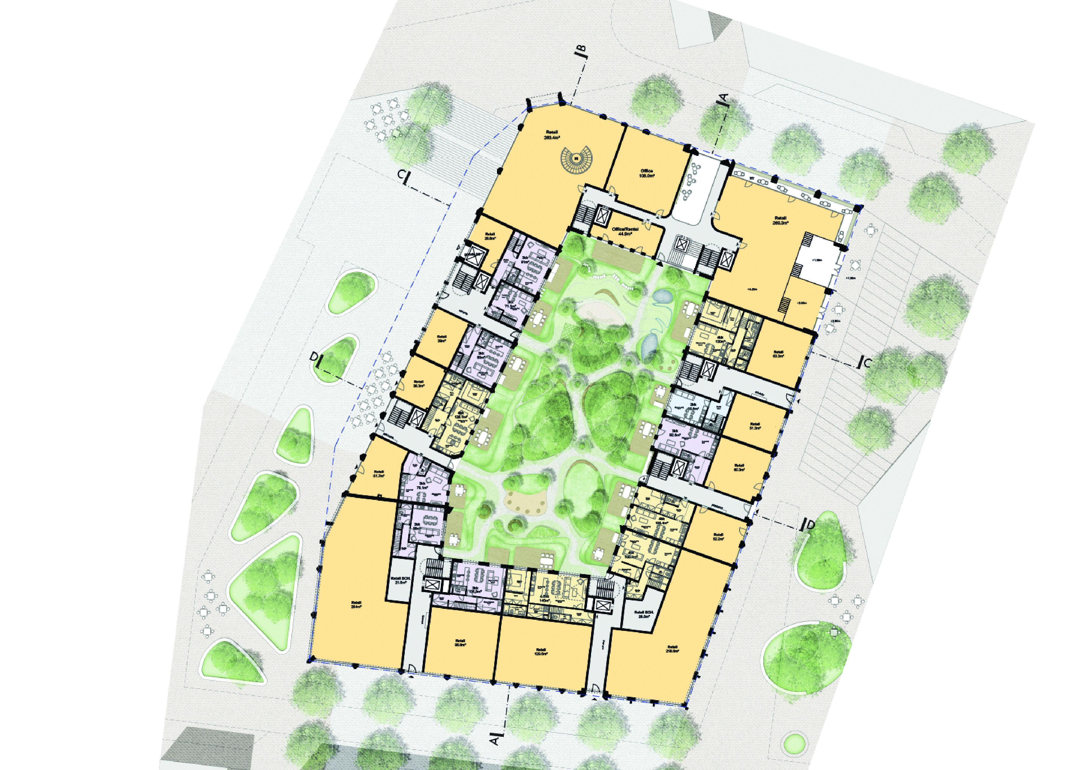 Blok je primárně koncipován jako obytný s obchody v přízemí, což přispěje k oživení ulic.