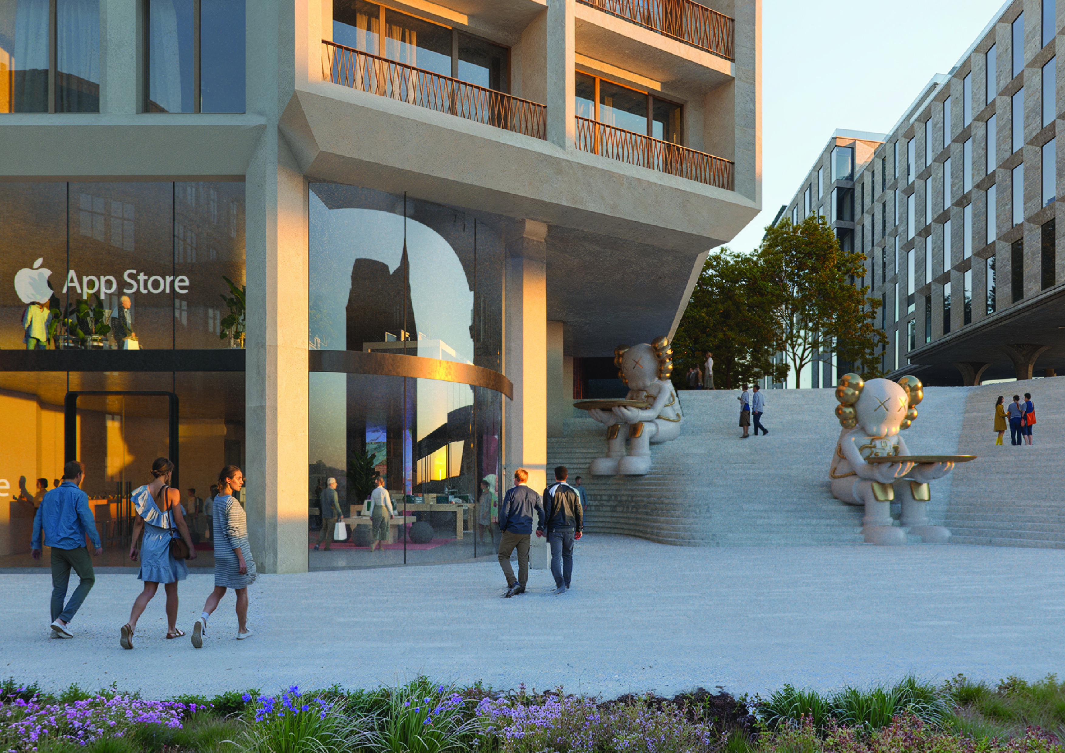 Návrh vzdává hold místním stavebním tradicím použitím regionálně získávaného pískovce a teplých odstínů potěru a kamene. Historické architektonické motivy jsou reinterpretovány a modernizovány, čímž vzniká dialog mezi starým a novým. Rozsah projektu je pečlivě modulován prostřednictvím různých objemových výrazů, které podporují silný pocit identity, místa a orientace jak pro obyvatele, tak pro návštěvníky. Hnací silou bloku 2 je design zaměřený na člověka. Různé společné prostory – na střechách, v upravených dvorech a v přízemí – podporují sociální interakci a vytvářejí vrstvené zóny soukromí, polosoukromí a otevřenosti, čímž podporují pocit sounáležitosti, komunity a pohody.