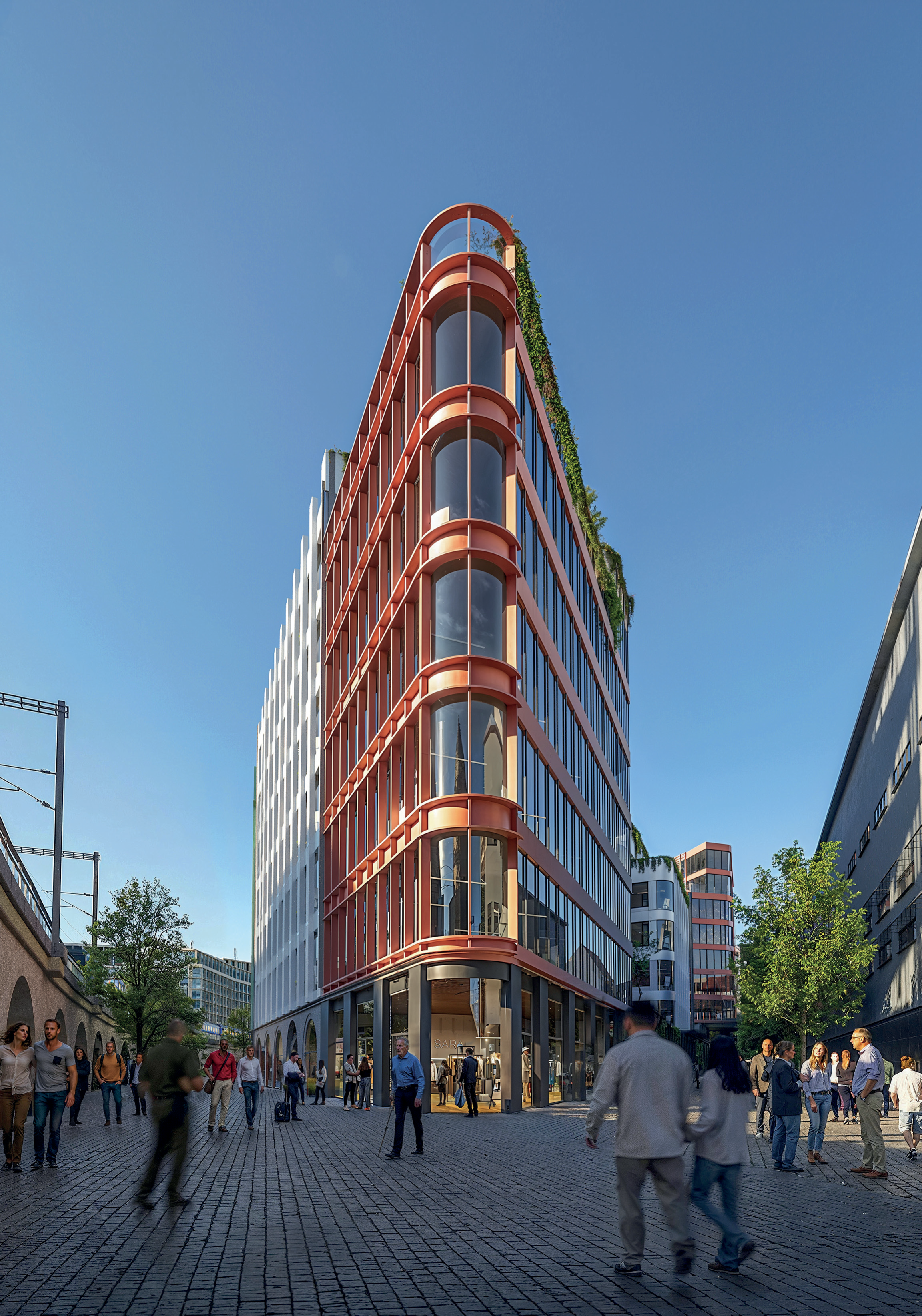 Pod heslem „jiné tváře, stejná identita,” tento návrh představuje moderně pojaté fasády, jež působí příjemně a dávají budově lidské měřítko. Zeleň na úrovni ulice a střešní zahrady přispějí ke zlepšení mikroklimatu, navodí klidnou atmosféru a přinesou kousek přírody do středu města. V architektonickém ztvárnění se spojují současné trendy s historií a udržitelností a vzniká tak místo, kde se potkává město, příroda a inspirace.