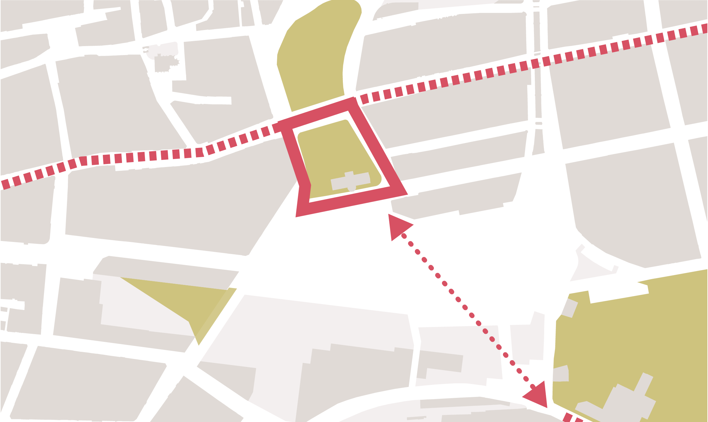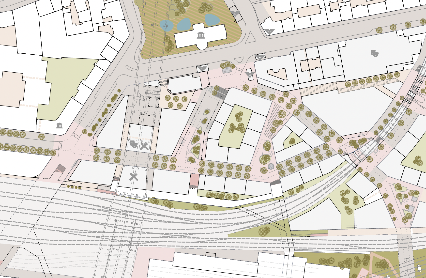 New routes and crossings open up the site, removing obstacles and connecting it smoothly to surrounding districts.