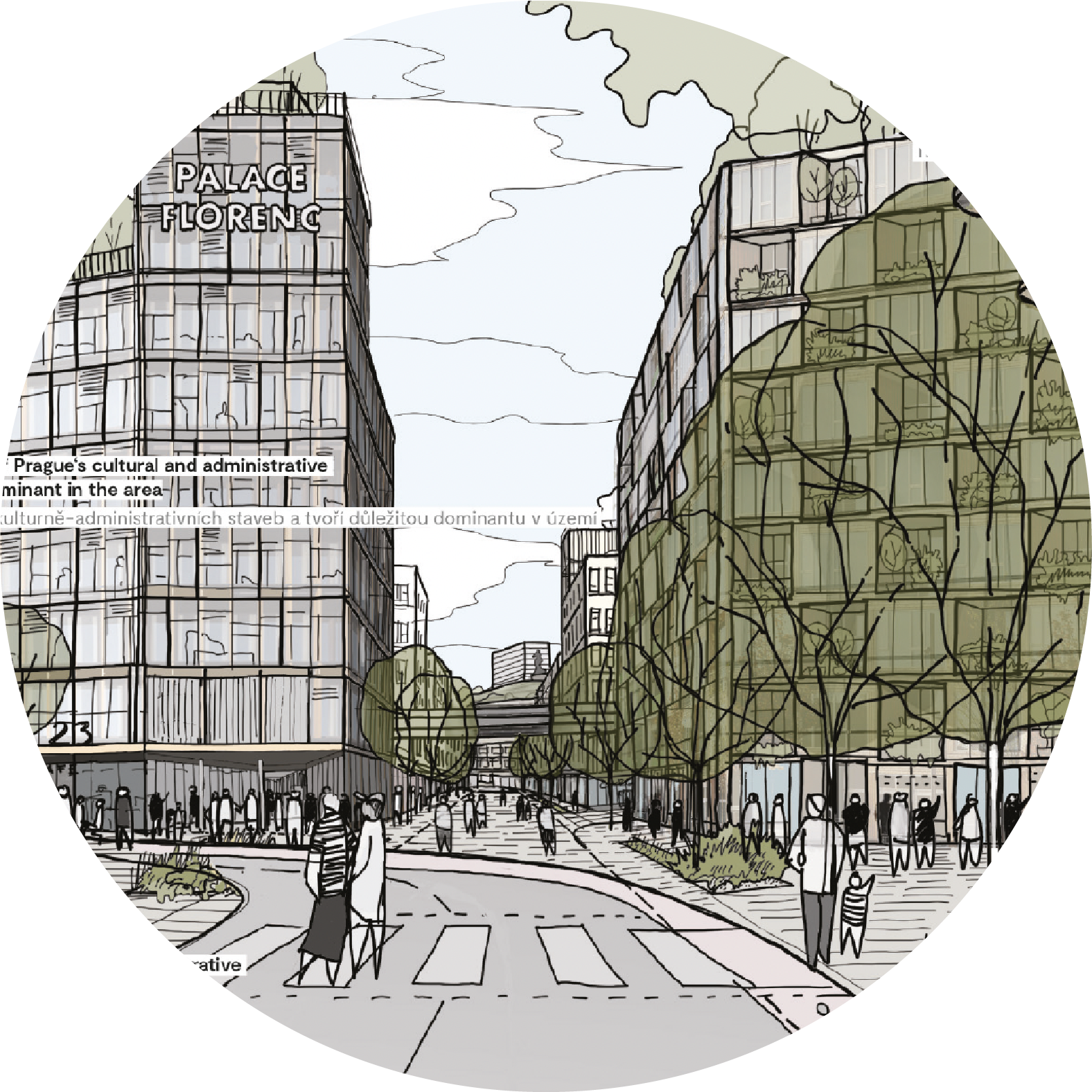 The winning Florenc21 masterplan creates a lively city quarter that blends seamlessly with Prague's historic urban fabric. Its streets and public spaces extend the existing city grid, respecting the scale, character, and diversity that make Prague unique. Designed for people first, the plan embraces mixed uses, vibrant street life, and accessible green areas — all within a short walk of the historic centre.